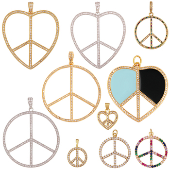 Segno di pace cuore rotondo forma di moneta 18K oro ciondolo ciondolo, braccialetto orecchino collana gioielli risultati fornitura S64