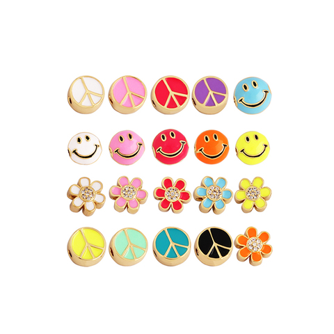 10mmカラフルなエナメルピースサインサンフラワービーズ、18Kゴールドメッキ真鍮DIYブレスレットコンポーネントアクセサリー卸売供給M88