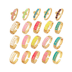BABY LOVE HOPE DREAMER CHAOSレターチャームフィンガーリング、カラフルなエナメルコーティングオープンアジャスタブルリングジュエリー所見用品S03