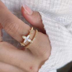INSシンプルファッションスタイル杖金メッキ真鍮光沢素材ジルコンフリーサイズ指輪