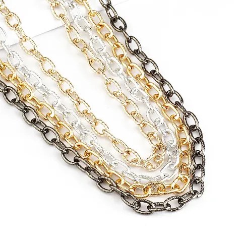 アルミチャンキーテクスチャケーブルチェーン、アルマイトブラック/シルバー/ゴールドメッキ、幅6mm、長さ1メートル、ジュエリーハンドバッグ作り用