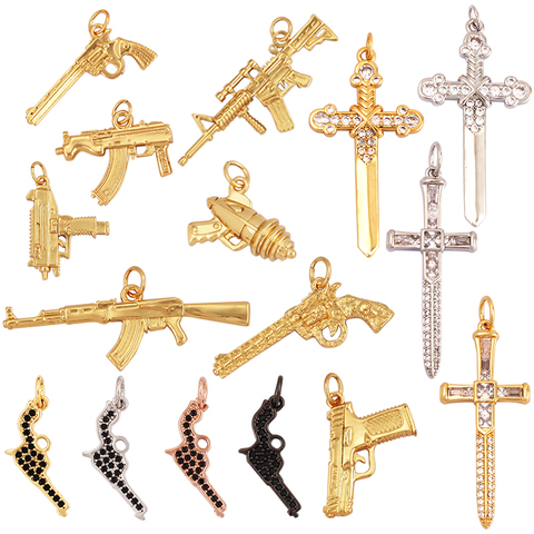 จี้เครื่องรางฝังเพทายขนาดเล็กยอดนิยมแนวยุโรปและอเมริกาน่ารักทอง18K กริชอาวุธอาวุธสร้อยคอจัดหา L17