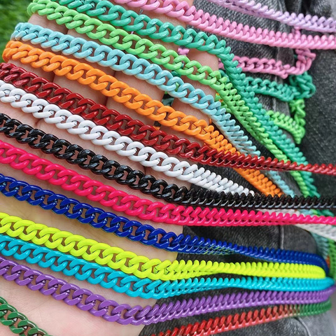 ห่วงโซ่เคลือบสีนีออนสแตนเลสไม่จางหายสไตล์ฮิปฮอปเครื่องประดับแบบทำมือสำหรับทำสร้อยคอสร้อยข้อมือกำไลข้อเท้า