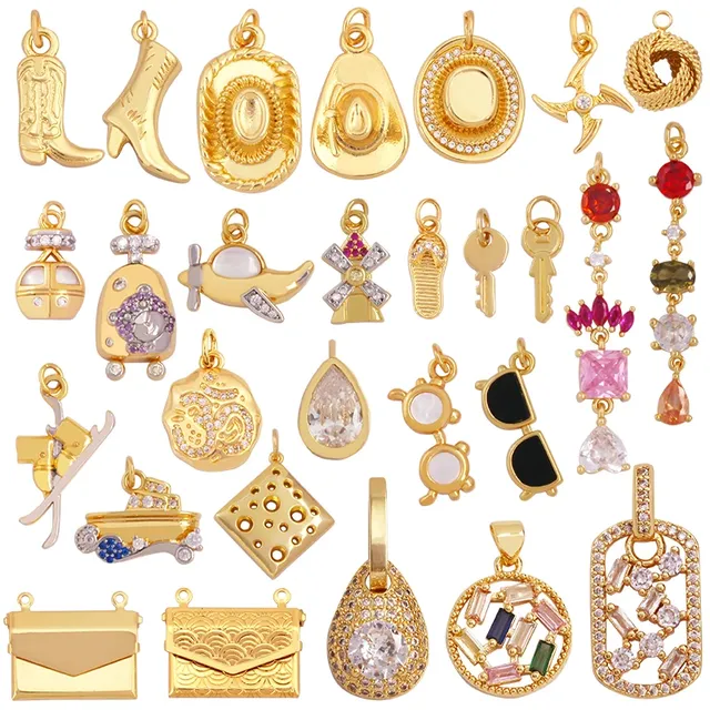 หมวกคาวบอยรองเท้าบูทกุญแจแว่นตากังหันลมรองเท้าแตะกีฬาจี้เสน่ห์สร้อยคอทอง18K เซอร์โคเนียเครื่องประดับหัตถกรรม K78