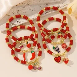 ลูกปัดผลไม้รูปหัวใจลูกพีชสีแดงสร้อยข้อมือคู่รักของขวัญแฟชั่นสำหรับเพื่อนที่ดีที่สุดกำไลข้อมือ X268-B เครื่องรางสำหรับปาร์ตี้แฟชั่น
